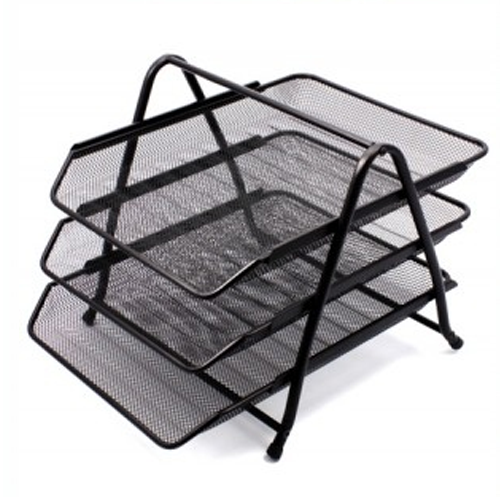 Dokumentų lentynėlė perforuoto metalo FORPUS, 3-jų dalių, juoda
